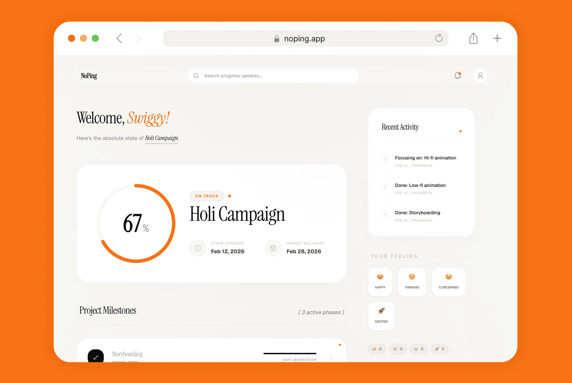 Add your milestones and tasks in seconds. Pure clarity, zero friction.